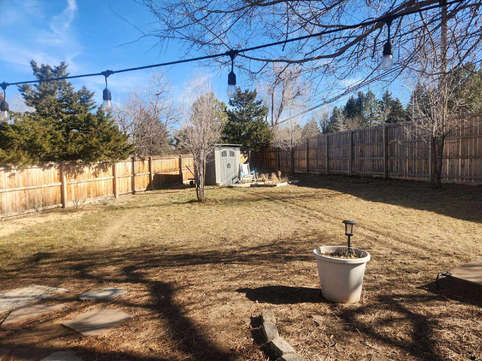 * Large Backyard with shed, flagstone patio, and kitty condo!
