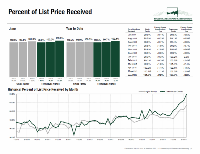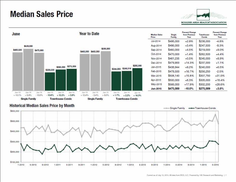 Interested in Boulder County's latest single family home, condo and townhome stats? Click on the June 2015 link to review the latest statistics released by the Boulder Area Realtor Association. There are also year-over-year figures well represented in the report.